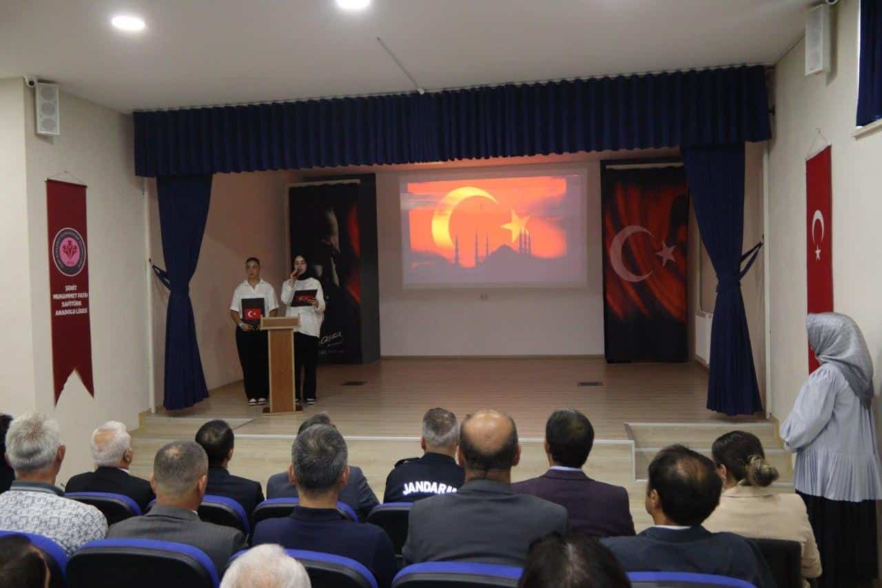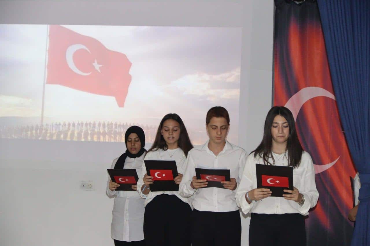 Saygı duruşu ve İstiklal Marşı'nın ardından Kur'an-ı Kerim tilaveti ile başlayan program, protokol konuşmalarıyla devam etti. Öğrenciler tarafından okunan şiirler, 15 Temmuz sunumu, oratoryo gösterisi ve 15 Temmuz Demokrasi Marşı'nın seslendirilmesiyle etkinlik sona erdi.