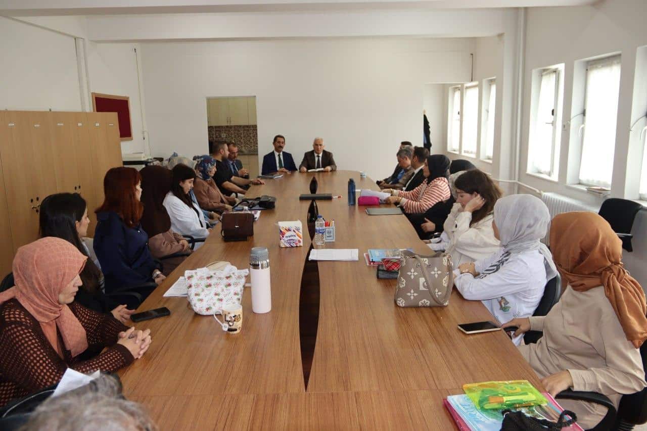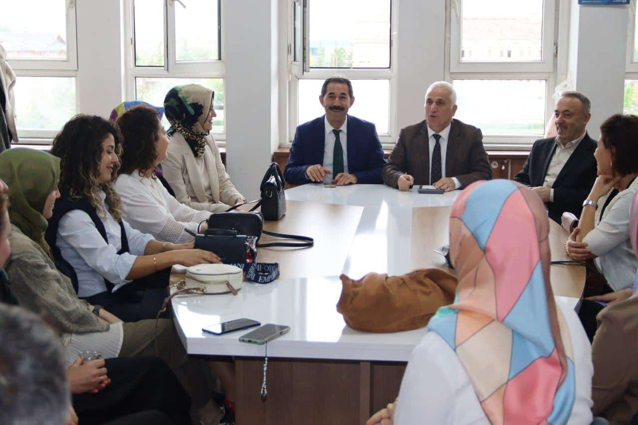 Öğretmenler odasında öğretmenlerle bir araya gelen İlçe Milli Eğitim Müdürümüz, Türkiye Yüzyılı Maarif Modeli, Yeşil Vatan ve Aile temaları ile Bakanlığımızın öncelikli eğitim politikaları üzerine değerlendirmelerde bulundu. Eğitim-öğretim süreçlerinde karşılaşılan ihtiyaçlar, yürütülen projeler ve öğretmenlerin görüş ile önerileri de not alındı.
